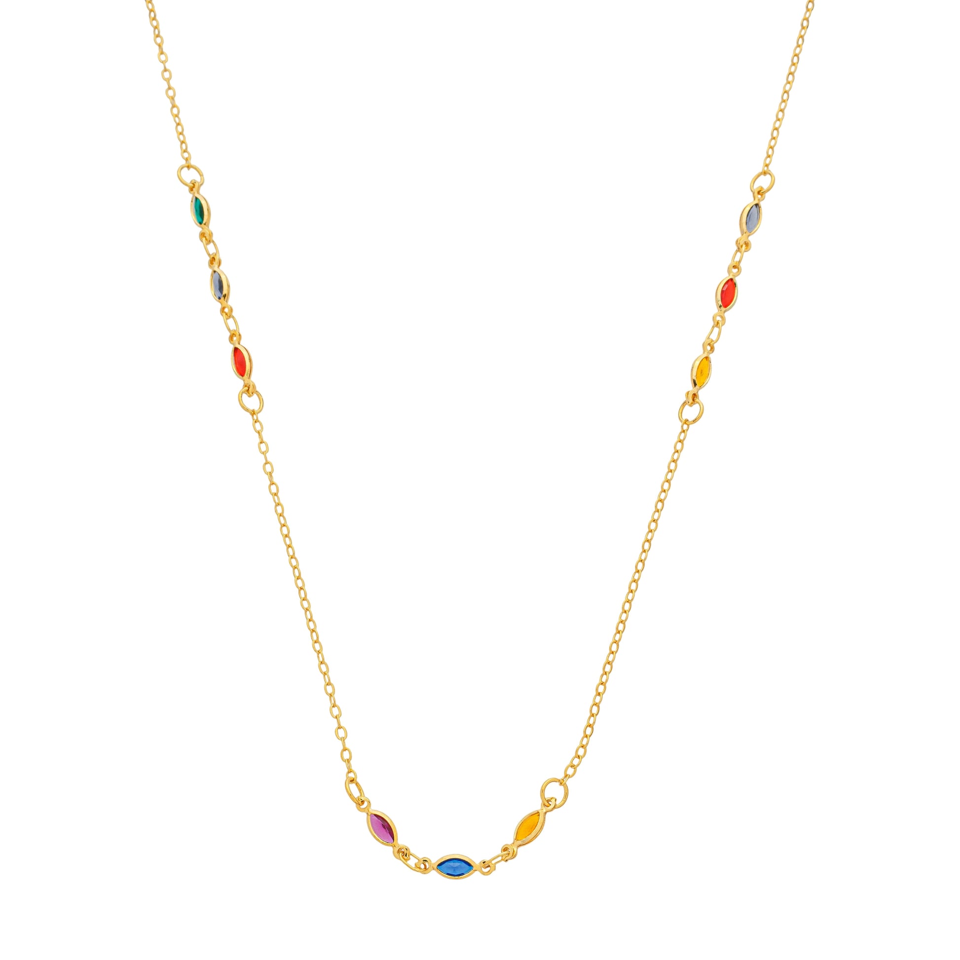 Colar delicado com pedras coloridas vibrantes em tons variados. Peça alegre e charmosa que traz cor e estilo ao seu visual, perfeita para o dia a dia.